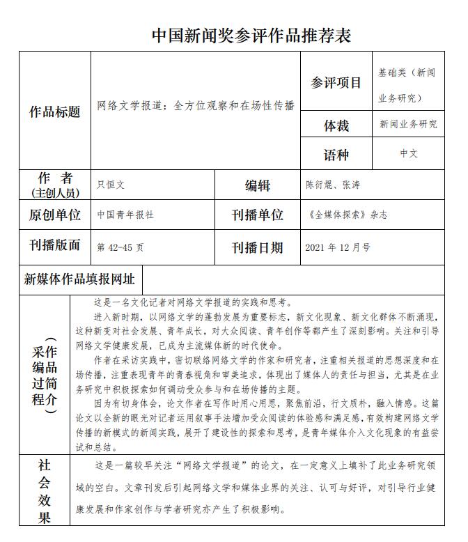 9. 《網(wǎng)絡(luò)文學報道:全方位觀察和在場性傳播》