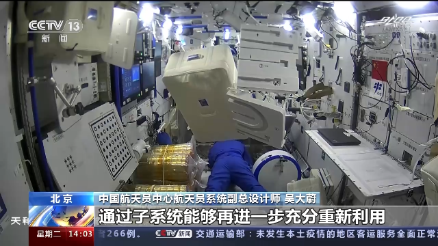 中國航天員中心航天員系統(tǒng)副總設(shè)計師 吳大蔚:它(二氧化碳還原系統(tǒng))主要是能夠?qū)崿F(xiàn)再生,把我們呼出的二氧化碳,通過子系統(tǒng)能夠再進一步充分重新利用,再用于我們的空間站,所以能夠節(jié)約大量資源,減少我們上行的資源和代價。