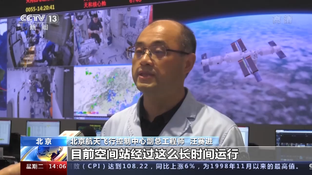 北京航天飛行控制中心副總工程師 汪賽進:目前空間站經(jīng)過這么長時間運行,工況正常,姿態(tài)穩(wěn)定,能源平衡。