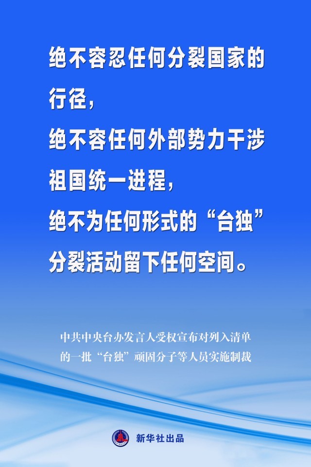 海報(bào)丨中共中央臺(tái)辦發(fā)言人受權(quán)宣布對(duì)列入清單的一批“臺(tái)獨(dú)”頑固分子等人員實(shí)施制裁