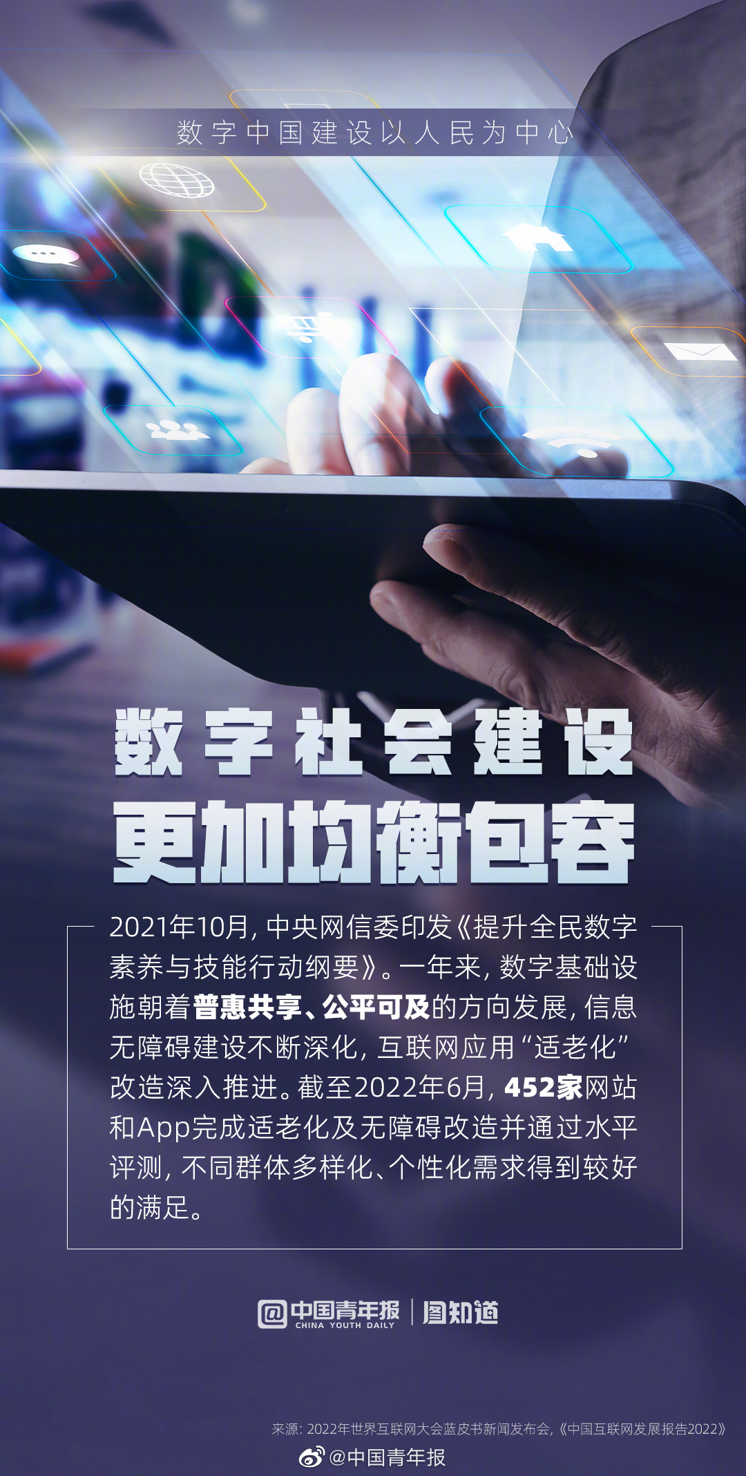 2022年世界互聯(lián)網大會今日發(fā)布了《中國互聯(lián)網發(fā)展報告2022》。報告中提到,一年以來,我國數(shù)字惠民便民取得了不小的成就,數(shù)字社會建設取得新的進展。公共服務更加智慧便捷,城鄉(xiāng)發(fā)展和治理模式不斷創(chuàng)新,數(shù)字社會建設更加均衡包容......數(shù)字化社會正在更廣范圍、更深程度提升人民群眾的獲得感、幸福感、安全感。
