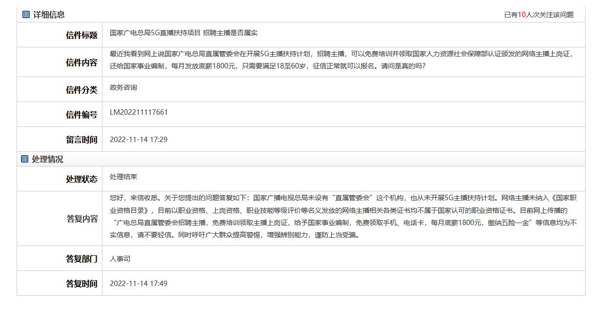 “廣電總局推5G主播扶持計劃還給事業(yè)編”?官方辟謠