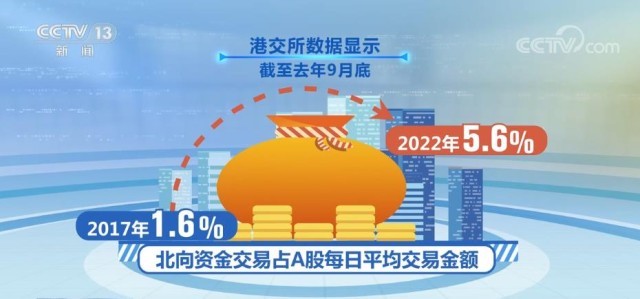 事實上,北向資金從去年末就在持續(xù)加大對中國資產(chǎn)的配置。國際金融協(xié)會統(tǒng)計顯示,去年11月流入中國資本市場的資金達85億美元,創(chuàng)去年單月新高。港交所數(shù)據(jù)顯示,截至去年9月底,北向資金交易占A股每日平均交易金額,由2017年的1.6%,升至2022年的5.6%。