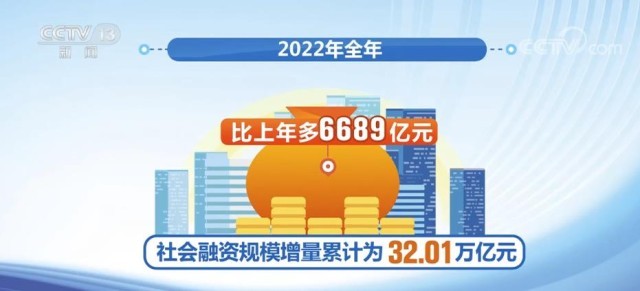 央視網(wǎng)消息:央行發(fā)布的數(shù)據(jù)顯示,2022年全年社會融資規(guī)模增量累計為32.01萬億元,比上一年多6689億元。