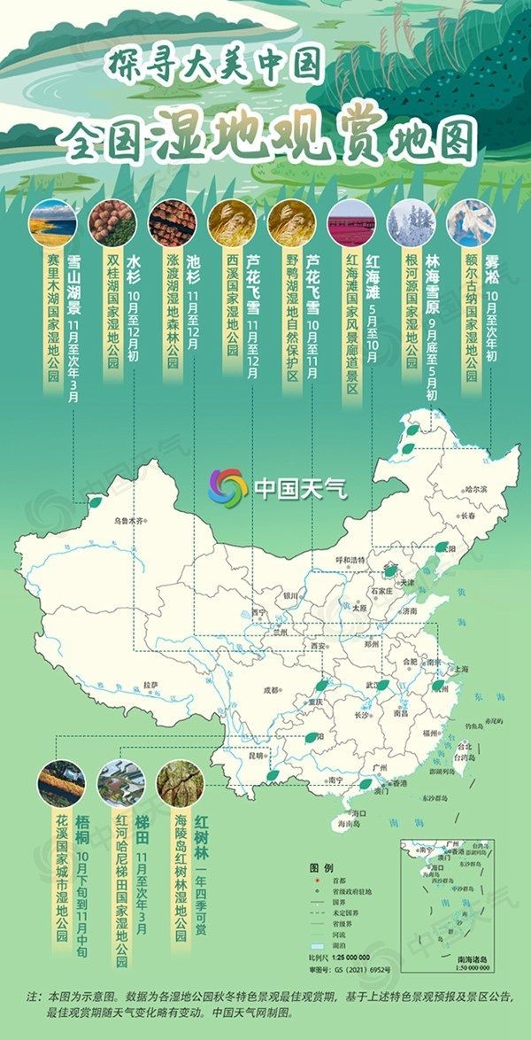 濕地不僅能為人們提供四季不同的可觀賞景觀,還是十分重要的自然生態(tài)系統(tǒng),為大量的動植物提供棲息地,既能保護生物的多樣性,也能調節(jié)氣候、凈化水質。有興趣的朋友可根據(jù)最佳觀賞期前往觀賞,提醒大家出游仍需注意佩戴口罩,做好健康防護工作。(中國天氣網(wǎng) 文/江漪 設計/任成英 數(shù)據(jù)支持/李靚)