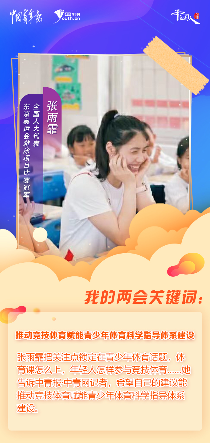 奧運會冠軍如何履職?張雨霏把關(guān)注點鎖定在青少年體育話題,體育課怎么上,年輕人怎樣參與競技體育……她告訴中青報·中青網(wǎng)記者,希望自己的建議能推動競技體育賦能青少年體育科學指導體系建設(shè)。