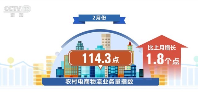 另外,農(nóng)村電商物流業(yè)務(wù)量連續(xù)增長。2月份,農(nóng)村電商物流業(yè)務(wù)量指數(shù)為114.3點(diǎn),比上月增長1.8個(gè)點(diǎn)。