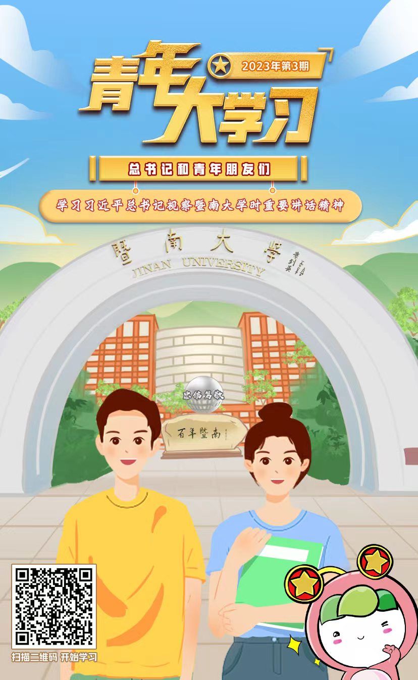 中國(guó)青年報(bào)客戶端訊(中青報(bào)·中青網(wǎng)記者 杜沂蒙)3月13日,由共青團(tuán)中央宣傳部和中國(guó)青年報(bào)·中青在線聯(lián)合推出的“青年大學(xué)習(xí)”網(wǎng)上主題團(tuán)課2023年第3期上線。2018年10月24日,習(xí)近平總書記到暨南大學(xué)視察并指出,我國(guó)有5000多萬海外僑胞,這是我國(guó)發(fā)展的一個(gè)獨(dú)特優(yōu)勢(shì),改革開放有海外僑胞的一份功勞,暨南大學(xué)要堅(jiān)持自己的辦學(xué)特色,把學(xué)校辦得更好,為海外僑胞回祖國(guó)學(xué)習(xí)、傳承中華文化創(chuàng)造更好條件。本期“青年大學(xué)習(xí)”網(wǎng)上主題團(tuán)課“學(xué)習(xí)習(xí)近平總書記視察暨南大學(xué)時(shí)重要講話精神”,帶領(lǐng)廣大團(tuán)員青年一起學(xué)習(xí)相關(guān)內(nèi)容。截至目前,“青年大學(xué)習(xí)”2023年兩會(huì)特輯參與學(xué)習(xí)互動(dòng)的人數(shù)為57738080人,總點(diǎn)擊量為113980661。