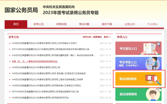 2023國考成績查詢?nèi)肟陂_放