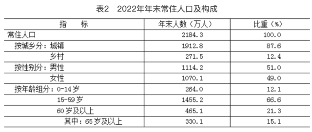 [3] 2022年常住人口有關(guān)數(shù)據(jù)為全國統(tǒng)一組織開展的2022年人口變動情況抽樣調(diào)查推算數(shù),調(diào)查標(biāo)準(zhǔn)時點(diǎn)為2022年11月1日零時。