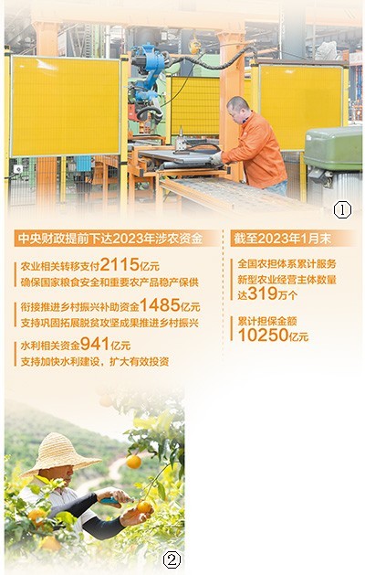 銜接推進鄉(xiāng)村振興補助資金1485億元、農(nóng)業(yè)相關轉移支付2115億元、水利相關資金941億元、農(nóng)村綜合改革轉移支付156億元……去年末,中央財政提前下達2023年一系列涉農(nóng)資金,為推進鄉(xiāng)村振興提供有力保障。開年以來,各地積極謀劃、加快落實,一筆筆財政資金直達田間地頭,全力支持搶抓農(nóng)業(yè)生產(chǎn)。