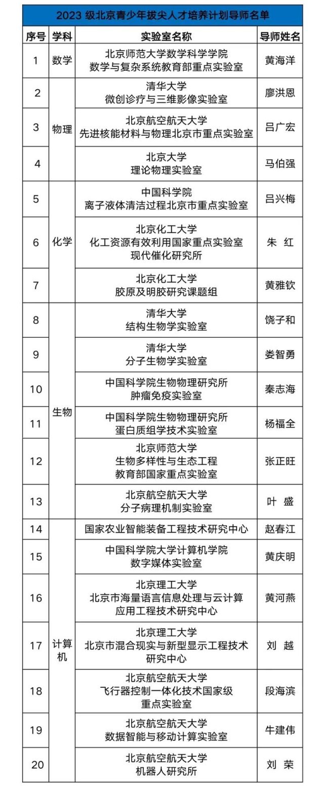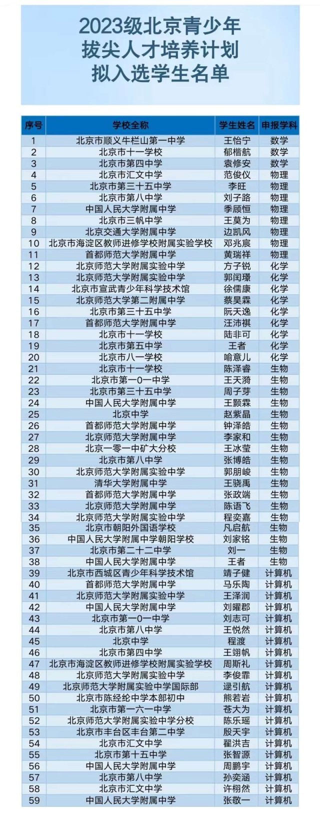 59名中學(xué)生擬入選“北京青少年拔尖人才培養(yǎng)計(jì)劃”