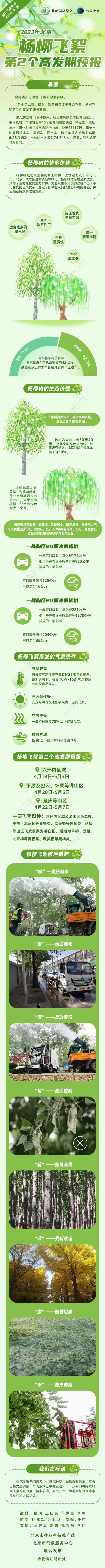 據(jù)預(yù)報,北京六環(huán)內(nèi)區(qū)域飛絮高發(fā)時間為4月18日到5月3日;平原及密云、懷柔等淺山區(qū)飛絮高發(fā)時間為4月20日到5月5日。延慶等山區(qū)飛絮高發(fā)時間為4月22日到5月7日。主要飛絮樹種為旱柳、垂柳、北京楊等青楊類、歐美楊等黑楊類。