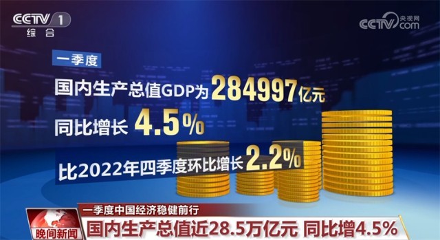 一季度,國內(nèi)生產(chǎn)總值(GDP)為284997億元,同比增長4.5%,比2022年四季度環(huán)比增長2.2%。在疫情防控取得重大決定性勝利后,中國經(jīng)濟逐步回升走穩(wěn),再次彰顯出大國經(jīng)濟的韌性與活力。