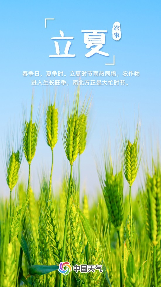 如果說春是生的季節(jié),那么夏就是長的季節(jié)?!稓v書》曰:“斗指東南,維為立夏,萬物至此皆長大,故名立夏也?!绷⑾?,是標(biāo)示萬物進(jìn)入旺季生長的一個重要節(jié)氣。此時,日照增加、氣溫漸升、雷雨增多,農(nóng)作物進(jìn)入了茁壯成長階段。春播作物漸漸長大,夏收作物進(jìn)入生長后期,冬小麥揚花灌漿,油菜接近成熟,大江南北都進(jìn)入了農(nóng)事繁忙時期。