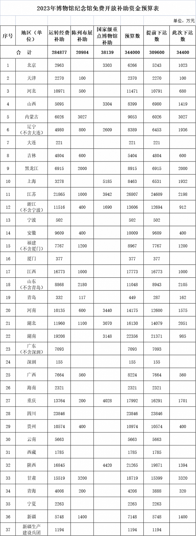 央視網(wǎng)消息:據(jù)財政部網(wǎng)站消息,根據(jù)《關于全國博物館、紀念館免費開放的通知》(中宣發(fā)〔2008〕2號)精神,財政部下達2023年博物館紀念館免費開放補助資金(項目代碼:10000013Z135050000044,2023年政府收支分類科目:1100208結算補助收入)。數(shù)據(jù)顯示,全國預算344000萬元,提前下達309600萬元,此次下達34400萬元。