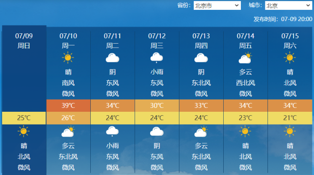 像是北京,明天最高氣溫還將在39℃,11日退出“高溫群”降至34℃,12日最高溫繼續(xù)下降至30℃。