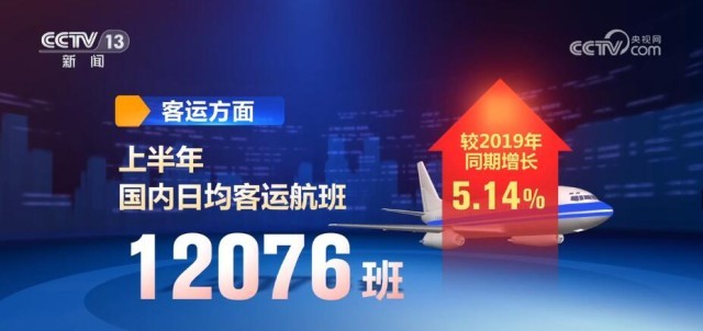 客運方面,上半年國內(nèi)日均客運航班12076班,較2019年同期增長5.14%;國內(nèi)日均旅客運輸量152.2萬人次,恢復至2019年同期的96.5%。貨運方面,上半年日均保障貨運航班590班,較2019年同期增長58.2%。
