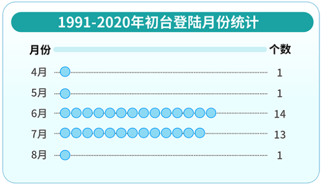 1991-2020年初臺登陸月份統(tǒng)計(jì) 丁茜制圖
