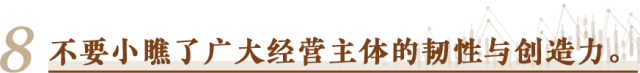 書寫這份“中國(guó)經(jīng)濟(jì)半年報(bào)”的,不光是宏觀政策的制定者,還有億萬(wàn)經(jīng)營(yíng)主體。它們?cè)谑袌?chǎng)經(jīng)濟(jì)風(fēng)風(fēng)雨雨中摸爬滾打過(guò)來(lái),承載著就業(yè),創(chuàng)造著財(cái)富,推動(dòng)著創(chuàng)新,體現(xiàn)著社會(huì)責(zé)任。無(wú)論是服務(wù)業(yè)還是制造業(yè),無(wú)論是傳統(tǒng)產(chǎn)業(yè)還是戰(zhàn)略性新興產(chǎn)業(yè),哪一行哪一業(yè),缺得了充滿活力的經(jīng)營(yíng)主體?看宏觀政策是否有效,標(biāo)準(zhǔn)之一就是看能否持續(xù)廣泛激發(fā)經(jīng)營(yíng)主體的活力。一句話,任何時(shí)候都不要小瞧了廣大經(jīng)營(yíng)主體的韌性與創(chuàng)造力,尊重他們,幫助他們,相信他們。