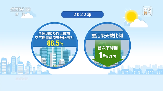 不僅北京,十年來,全國重點城市PM2.5平均濃度下降57%。2022年,全國地級及以上城市空氣質量優(yōu)良天數比例為86.5%,重污染天數比例首次下降到1%以內。我國成為全球大氣質量改善速度最快的國家,藍天保衛(wèi)戰(zhàn)正在給百姓帶來實實在在的幸福感。