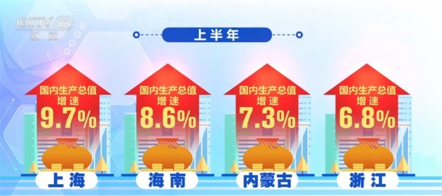 從上半年各省份的國內(nèi)生產(chǎn)總值增速看,江蘇、浙江等15個省份增速超過全國5.5%的增速,其中,上海、海南、內(nèi)蒙古和浙江等省份增速均在6.8%以上,廣東、江蘇、山東等21個省份的國內(nèi)生產(chǎn)總值增速超過了各自一季度的增速,經(jīng)濟增長恢復(fù)勢頭明顯。