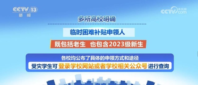 多所高校明確,臨時困難補貼申領人既包括老生,也包含2023級新生。各校均公布了具體的申領方式和途徑,受災學生可登錄學校網(wǎng)站或者學校相關公眾號進行查詢。其中,南開大學、北京航空航天大學等高校公布了資助熱線。上海交通大學、西北工業(yè)大學等高校提出,需要幫助的學生可第一時間聯(lián)系輔導員。華東師范大學提出需要幫助的同學可在學生資助管理中心網(wǎng)站后臺申請臨時性困難補助。
