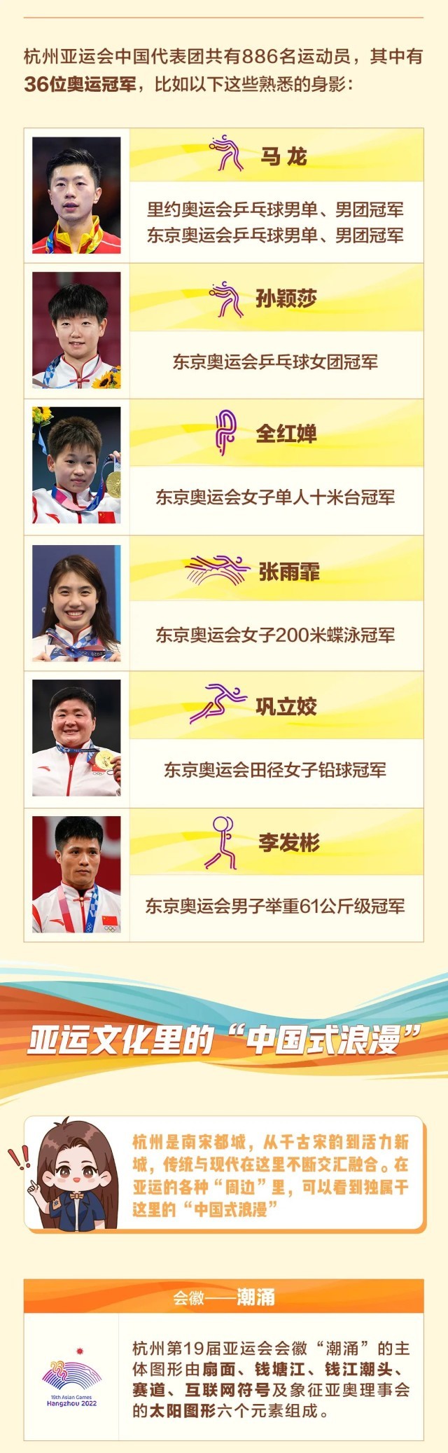 亞運(yùn)會(huì)有哪些值得關(guān)注的比賽和知名運(yùn)動(dòng)員?杭州舉辦的這屆盛會(huì)里,又藏著哪些“中國(guó)式浪漫”?想全面了解亞運(yùn),這份攻略,你絕對(duì)不能錯(cuò)過(guò)!