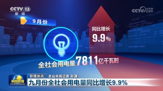 九月份全社會(huì)用電量同比增長(zhǎng)9.9%