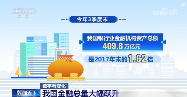 最新數(shù)據(jù)顯示,今年3季度末,我國銀行業(yè)金融機構(gòu)資產(chǎn)總額為409.8萬億元,是2017年末的1.62倍。銀行業(yè)金融機構(gòu)本外幣貸款余額239.5萬億元,是2017年末的1.91倍。本外幣存款余額286.6萬億元,是2017年末的1.69倍。保險方面,3季度末,保險公司總資產(chǎn)29.6萬億元,是2017年末的1.77倍。從2018年到今年3季度末,保險公司賠款與給付累計支出8.4萬億元,保險的保障功能日益突出。
