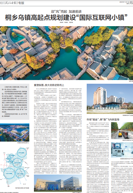 11月1日,《浙江日報》整版刊發(fā)《迎“風”而起 加速前進桐鄉(xiāng)烏鎮(zhèn)高起點規(guī)劃建設“國際互聯(lián)網(wǎng)小鎮(zhèn)”》,全文如下: