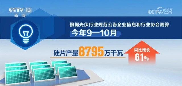 央視網(wǎng)消息:工業(yè)和信息化部昨天(12月13日)發(fā)布當前全國光伏制造行業(yè)最新運行情況。數(shù)據(jù)顯示,今年9—10月,我國光伏制造業(yè)保持高位運行,硅料、硅片、電池、組件產(chǎn)量同比增長均超60%。