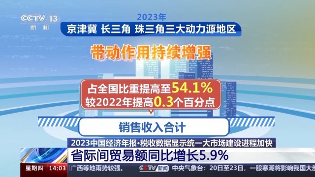 國家稅務(wù)總局新聞發(fā)言人 黃運(yùn):2023年,衡量國內(nèi)各省之間貿(mào)易聯(lián)系緊密程度的省際間貿(mào)易額同比增長5.9%,占全國貿(mào)易總額比重提高至42.7%,較2022年提高0.5個百分點(diǎn),而且也呈逐年提升的態(tài)勢,反映經(jīng)濟(jì)內(nèi)循環(huán)更加順暢,統(tǒng)一大市場建設(shè)進(jìn)程加快。