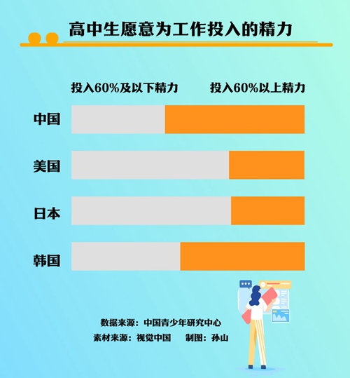 六成受訪中國(guó)高中生愿意投入更多精力到工作上