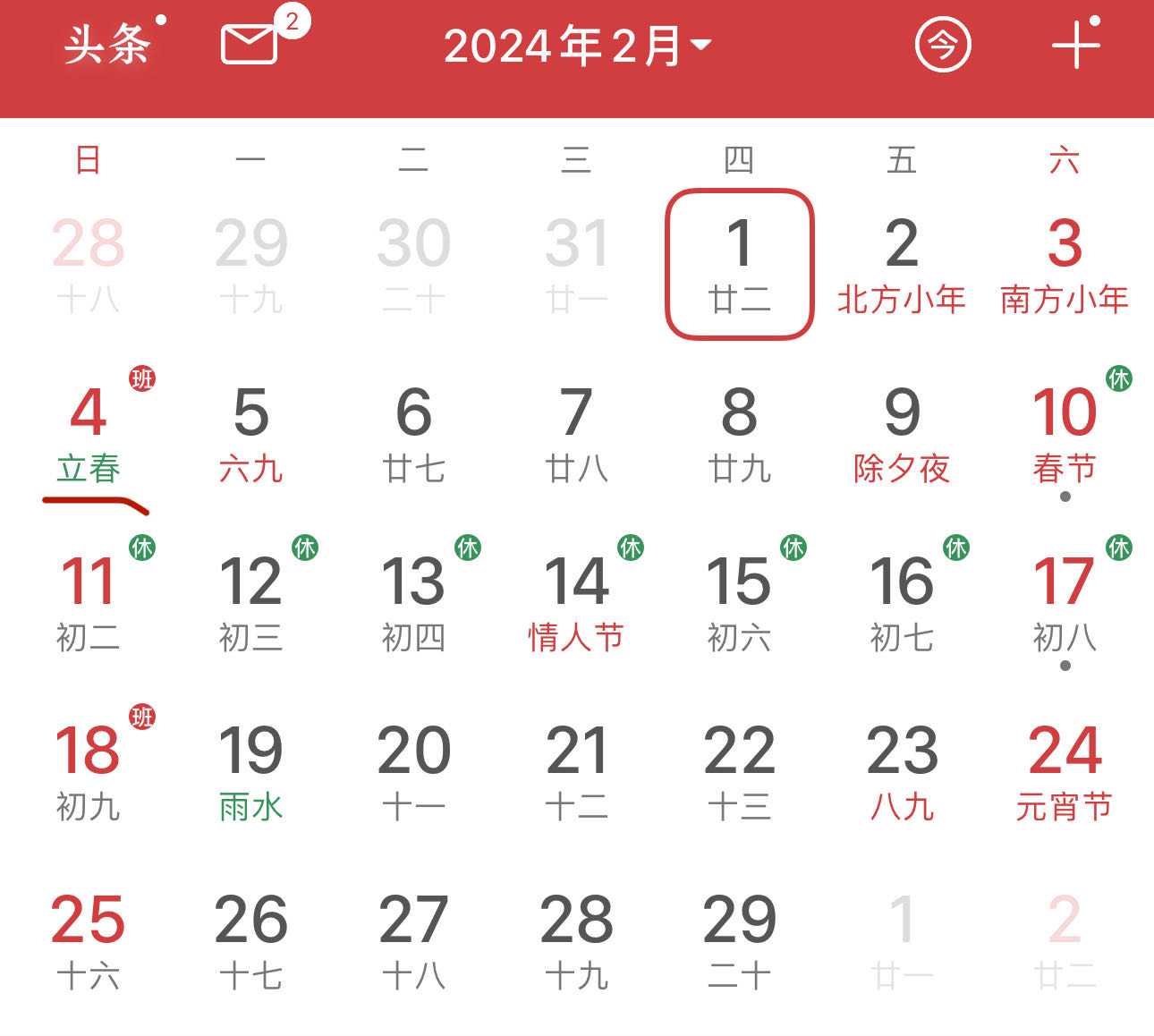 例如, 2024年的“立春日”是2月4日,即農(nóng)歷兔年的臘月二十五,而下一個(gè)“立春日”是2025年2月3日,已經(jīng)進(jìn)入了農(nóng)歷蛇年的正月,所以有說(shuō)法稱,2024農(nóng)歷年“無(wú)春”。