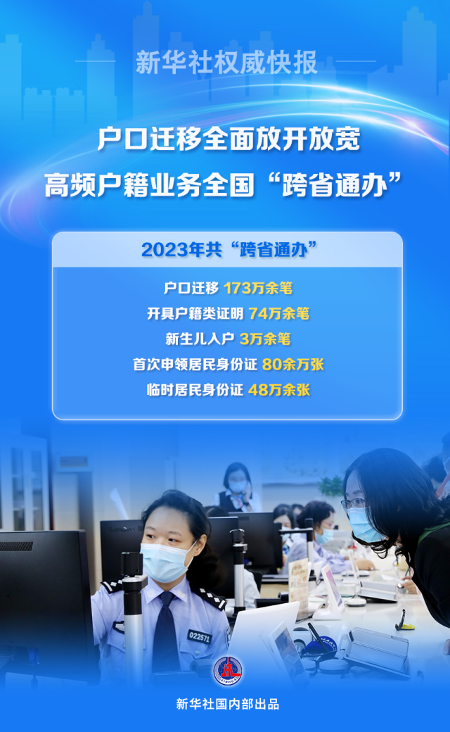 2023年共“跨省通辦”戶口遷移173萬余筆