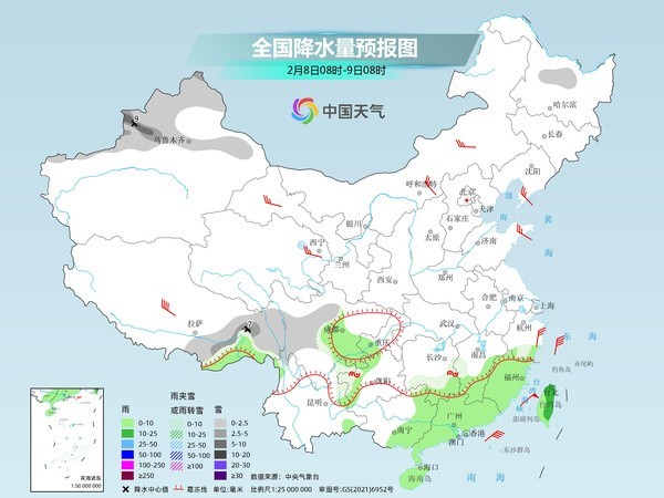 今天(2月7日)南方大范圍雨雪天氣持續(xù),湖南中南部、江西西南部等地部分地區(qū)有大雪,局地暴雪;貴州中部和東部、湖南中南部以及江西西北部山區(qū)、浙江中南部山區(qū)等地部分地區(qū)有凍雨。明天,南方雨雪將開始減弱,到除夕全國大部地區(qū)都將迎來晴朗天氣。同時,隨著雨雪消退,持續(xù)多日的南方濕冷天氣也將在春節(jié)假期間迎來轉折。
