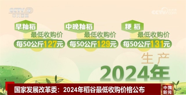 記者從國家發(fā)展改革委了解到,經(jīng)國務(wù)院批準(zhǔn),今年國家繼續(xù)在稻谷主產(chǎn)區(qū)實(shí)行最低收購價(jià)政策,2024年生產(chǎn)的早秈稻(三等)、中晚秈稻和粳稻最低收購價(jià)分別為每50公斤127元、129元和131元。限定2024年最低收購價(jià)稻谷收購總量為5000萬噸,其中秈稻2000萬噸、粳稻3000萬噸。