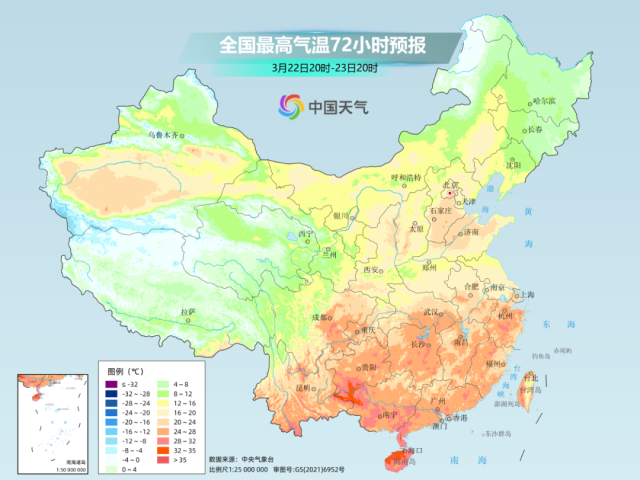 而江南、華南一帶的氣溫高點多出現(xiàn)在23日至25日,屆時不少地方最高氣溫將沖到30℃以上,暖熱程度遠(yuǎn)超常年同期。大城市中,杭州25日最高氣溫或達(dá)32℃,打卡初夏體驗;福州24、25日最高氣溫可能達(dá)到34℃,距離高溫只有“一步之遙”。