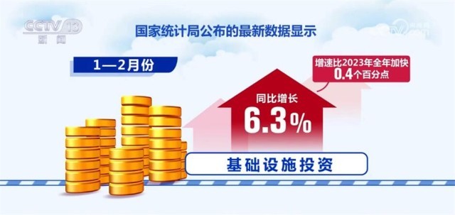 隨著增發(fā)國債項目的落地實施和支撐災(zāi)后應(yīng)急恢復(fù)重建資金的陸續(xù)下達(dá),基礎(chǔ)設(shè)施投資增速小幅回升。國家統(tǒng)計局公布的最新數(shù)據(jù)顯示,1—2月份,基礎(chǔ)設(shè)施投資同比增長6.3%,增速比2023年全年加快0.4個百分點。其中,水利管理業(yè)投資增長13.7%、教育行業(yè)投資增長12.1%、基礎(chǔ)設(shè)施等民生補短板投資保持良好增長態(tài)勢。