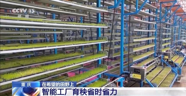 在插秧前的育秧環(huán)節(jié),永川區(qū)部分鄉(xiāng)鎮(zhèn)也實現(xiàn)了智慧化育秧。在智能育秧工廠里,整個育秧的過程完全在一條自動化流水線上,5分鐘就能完成上百個育秧盤,然后經(jīng)過叉車運送至智能溫控催芽室,等待種子破土而出。據(jù)農(nóng)技人員介紹,以前20個工人,一天8小時只能完成2000盤育秧盤,現(xiàn)在流水線作業(yè),5個人一天可以達到1萬盤以上。并且在近5000平方米的智能育秧工廠,一次性可育秧50000多盤,滿足3000多畝稻田的秧苗需求。