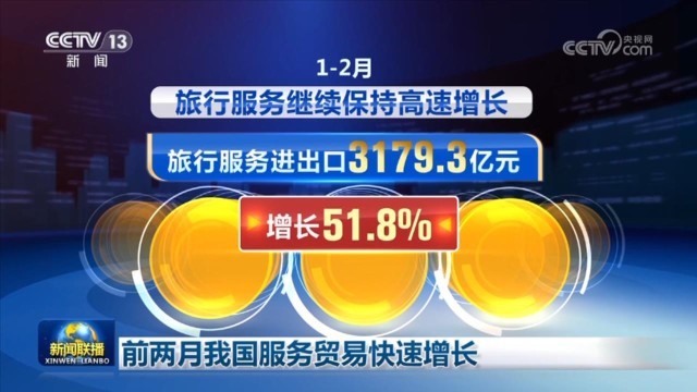 旅行服務增長勢頭迅猛。1—2月,旅行服務繼續(xù)保持高速增長,旅行服務進出口3179.3億元,增長51.8%,成為服務貿(mào)易第一大領(lǐng)域。