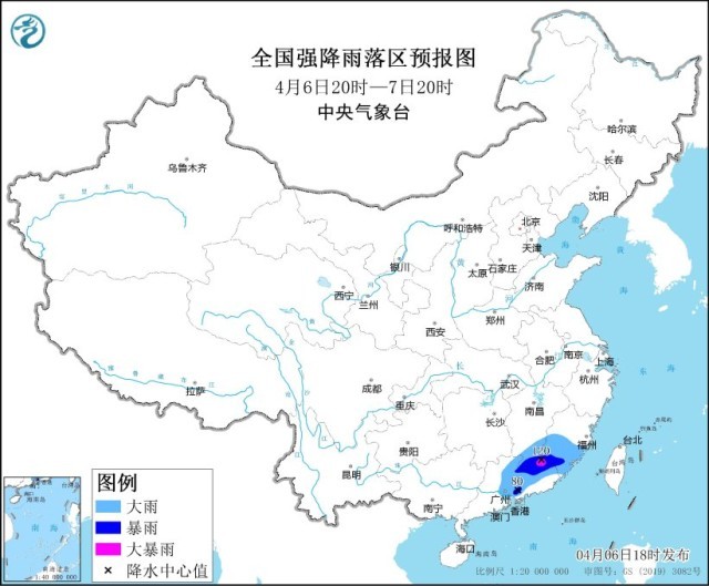 央視網(wǎng)消息:中央氣象臺(tái)4月6日18時(shí)發(fā)布暴雨藍(lán)色預(yù)警。