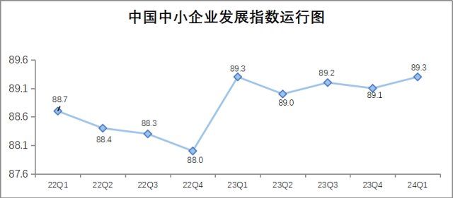 中國中小企業(yè)協(xié)會今天(9日)發(fā)布,一季度中國中小企業(yè)發(fā)展指數(shù)為89.3,比去年四季度上升0.2點。
