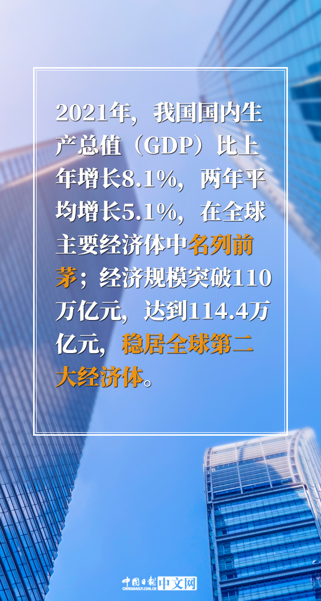 2021年,我國成功戰(zhàn)勝疫情等多重挑戰(zhàn),經(jīng)濟實力、社會生產(chǎn)力和綜合國力穩(wěn)步提高,改革開放創(chuàng)新深入推進,民生福祉持續(xù)提升,實現(xiàn)了“十四五”良好開局。最新發(fā)布的《2021年國民經(jīng)濟和社會發(fā)展統(tǒng)計公報》顯示,2021年,我國國內(nèi)生產(chǎn)總值(GDP)比上年增長8.1%,兩年平均增長5.1%,在全球主要經(jīng)濟體中名列前茅;連續(xù)5年蟬聯(lián)全球貨物貿(mào)易第一位;主要工業(yè)產(chǎn)品產(chǎn)量穩(wěn)居世界首位……我國遞出了一份亮眼的“成績單”。
