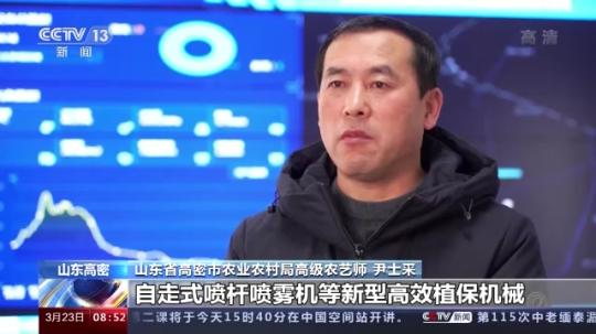 山東省高密市農(nóng)業(yè)農(nóng)村局高級農(nóng)藝師 尹士采:我們利用植保無人機(jī)、自走式噴桿噴霧機(jī)等新型高效植保機(jī)械,開展小麥病蟲草害統(tǒng)防統(tǒng)治,同時(shí)加強(qiáng)對農(nóng)戶、家庭農(nóng)場的指導(dǎo)服務(wù)。