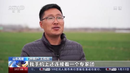 山東高密市種糧戶 王偉利:現(xiàn)在不是我一個(gè)人在種地,我手機(jī)上還連接著一個(gè)專家團(tuán)。根據(jù)他們的指導(dǎo),在冷空氣來臨之前,我早就給小麥澆上了水,土地沒有裂縫,冷空氣就進(jìn)不去。
