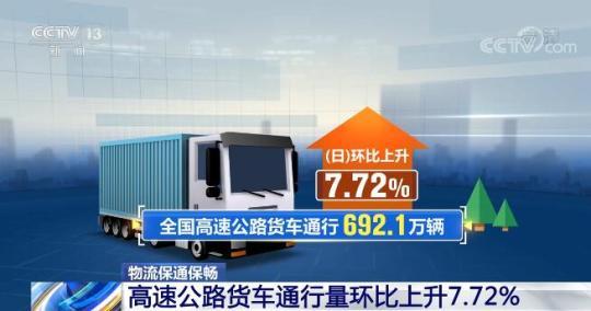 央視網(wǎng)消息:最新的全國(guó)物流保通保暢運(yùn)行數(shù)據(jù)顯示,全國(guó)貨運(yùn)物流有序運(yùn)行,高速公路貨車(chē)通行量持續(xù)恢復(fù)。