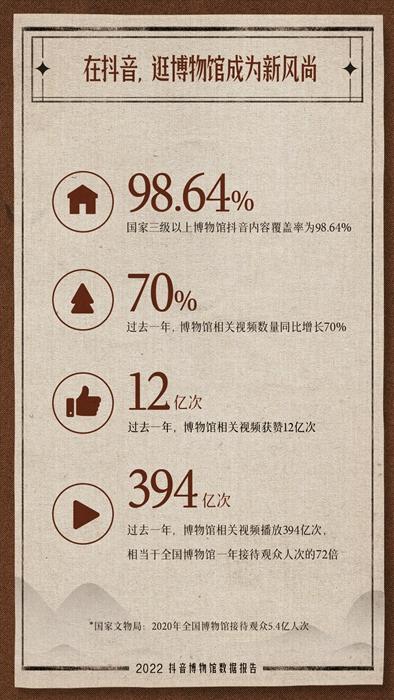 報(bào)告顯示:全國三級以上博物館抖音內(nèi)容覆蓋率達(dá)98.64%