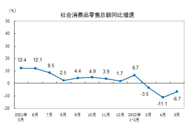 統(tǒng)計(jì)局:5月份消費(fèi)同比下降6.7%,餐飲收入下降21.1%